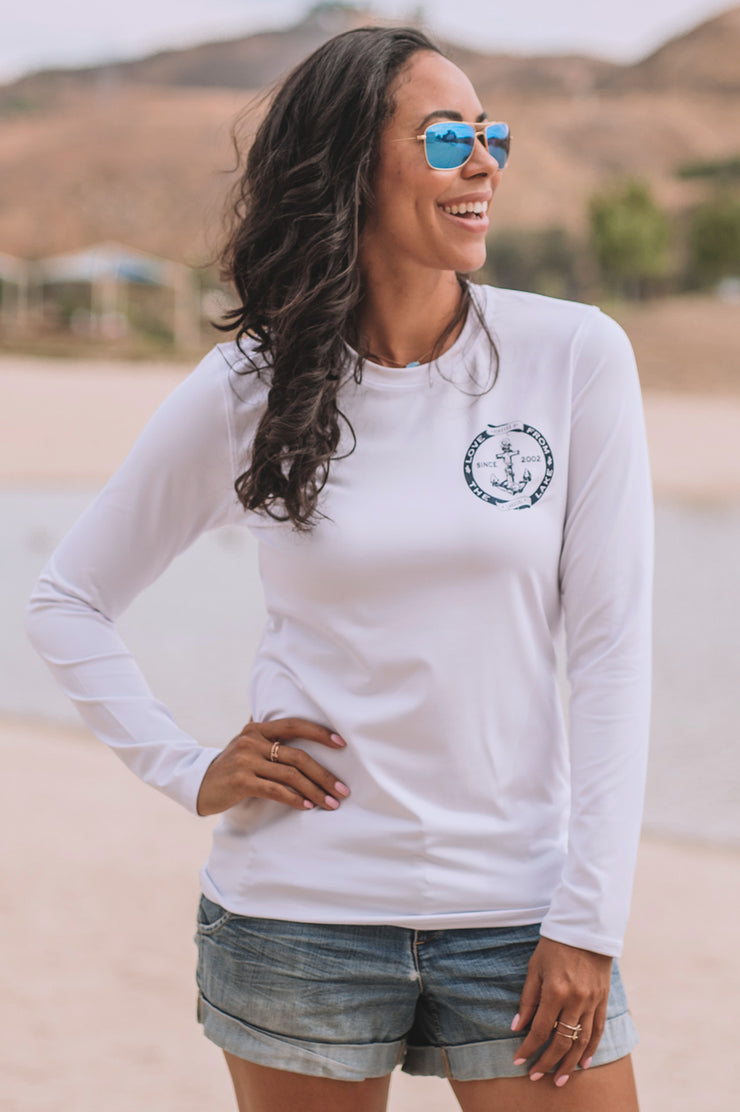 Have fun in the sun while staying protected. If you love being out on the lake, protection from those harmful rays is a must - do it in style with a Lakegirl rash guard! Left chest and full back screen prints. UV protection.